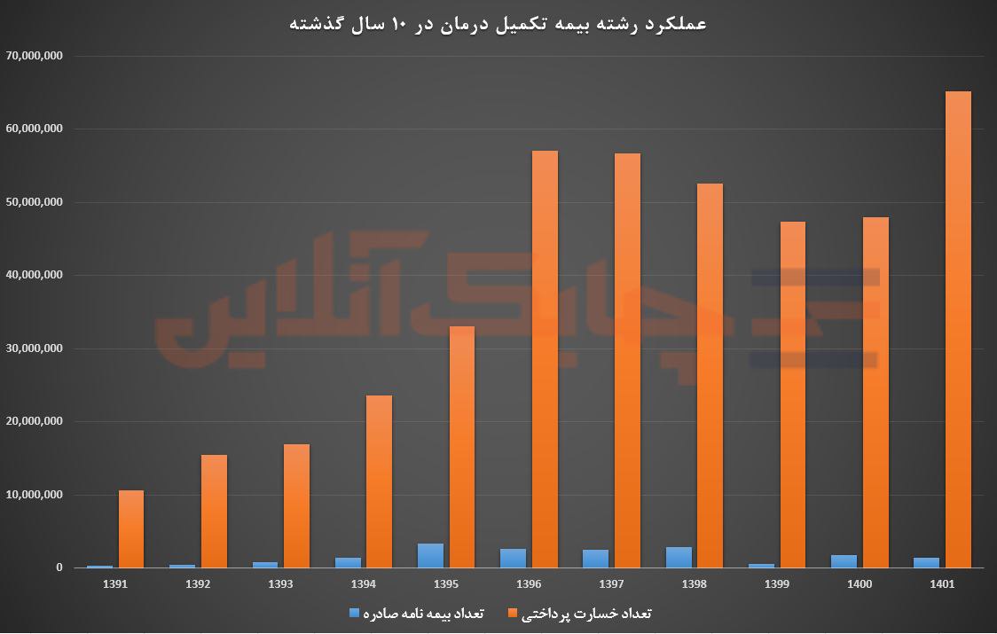 گزارش ها نشان می دهد که رشته بیمه درمان حدود نیمی از حق بیمه تولیدی و خسارت پرداختی شرکت های بیمه بازرگانی را به خود اختصاص داده و بالاترین ضریب خسارت را در بین انواع بیمه نامه ها به همراه دارد.