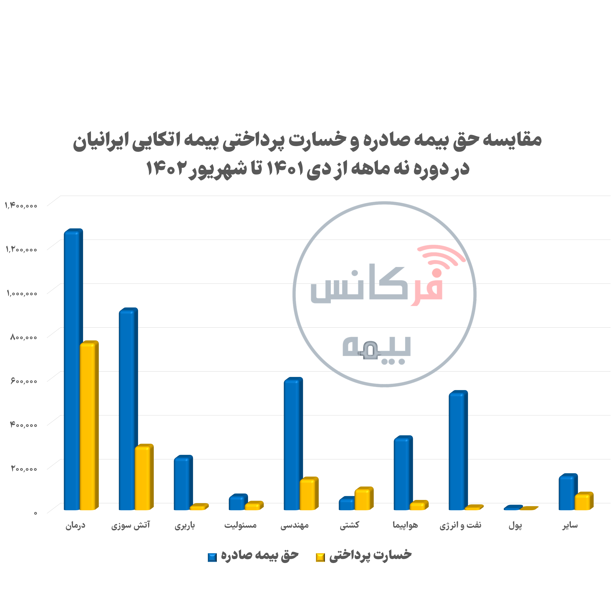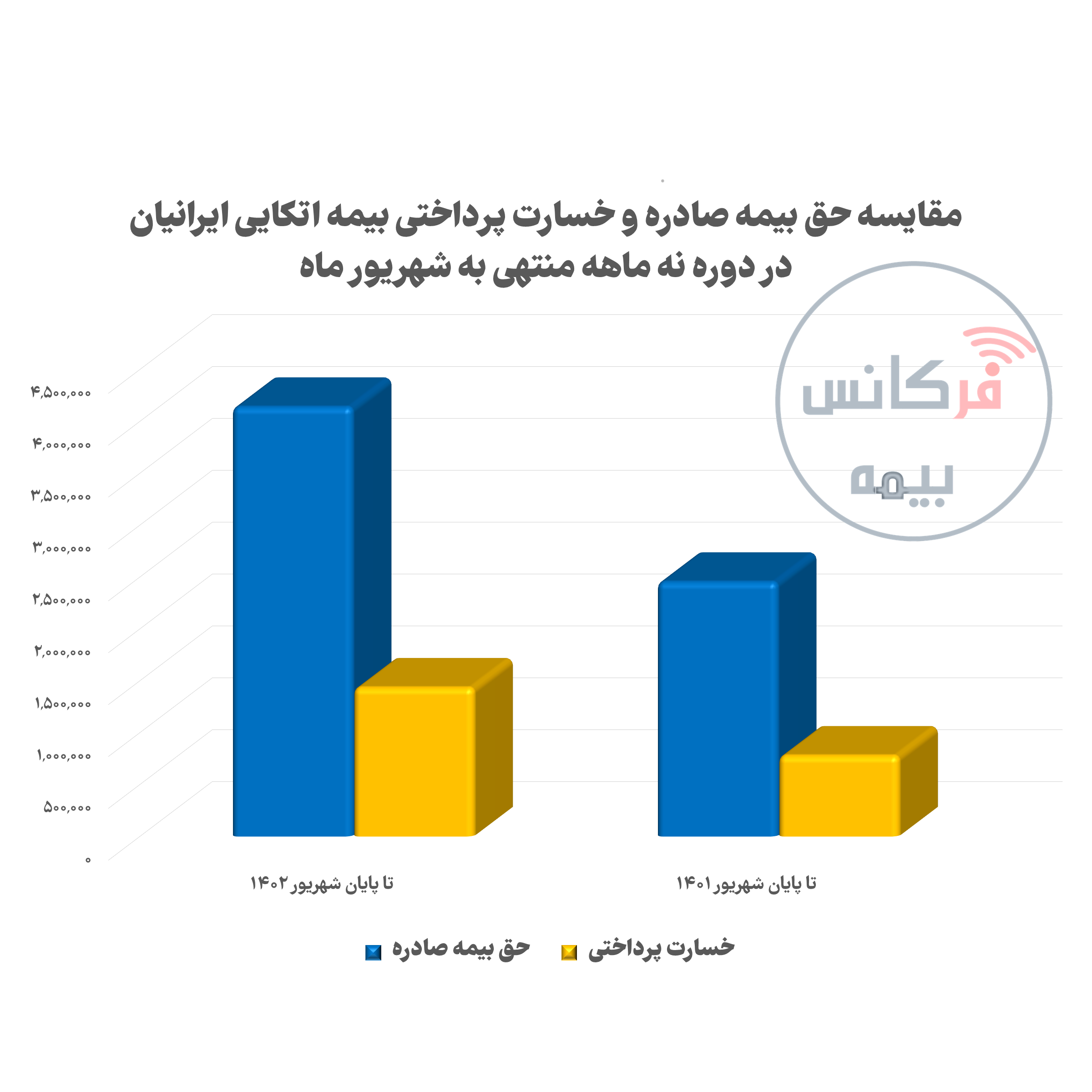 بیمه اتکایی ایرانیان در نه ماهه منتهی به شهریور ماه ۱۴۰۲ مبلغ ۴۱۳ میلیارد و ۹۹۲ میلیون تومان حق بیمه صادر و مبلغ ۱۴۳ میلیارد و ۵۸۳ میلیون تومان خسارت پرداخت کرده است. حق بیمه تولیدی شرکت در مدت مشابه سال گذشته ۲۴۵ میلیارد و ۴۱۴ میلیون تومان و خسارت پراختی آن ۷۷ میلیارد و ۹۹۰ میلیون تومان بوده است. بدین ترتیب میتوان گفت حق بیمه تولیدی شرکت طی مدت زمان مورد مقایسه ۶۸ درصد رشد داشته در حالی که خسارت پرداختی شرکت در همین مدت ۸۴ درصد رشد پیدا کرده است.