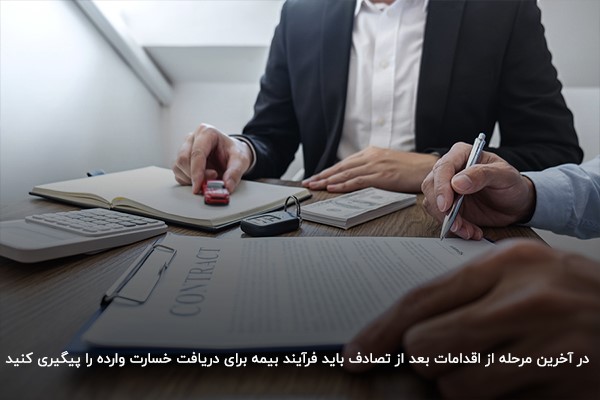 ۶- پیگیری فرآیند بیمه برای دریافت خسارت وارده در تصادف