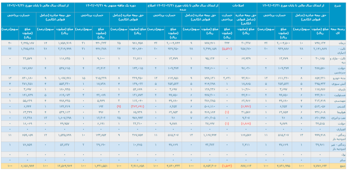 صدور حق بیمه تیرماه نسبت به خرداد ماه نیز نشان از افزایش درآمد ۲۱ درصدی برای این شرکت بیمه دارد به طوری که صدور حق بیمه در خرداد ماه ۳۲۱ میلیارد بوده، اما در تیرماه به ۳۹۱ میلیارد تومان رسیده است که مقایسه اعداد نشان از رشد درآمد یک ماهه از حق صدور بیمهای برای این نماد بیمهای بورسی دارد.