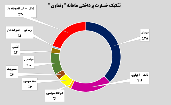 “وتعاون” بیشترین خسارتی که در این دوره پرداخت کرده، مربوط به بخش «درمان» با مبلغی بالغ بر ۳۹ میلیارد تومان بوده است که سهم ۳۸ درصدی از خسارت پرداختی این شرکت را به خود اختصاص داده است.