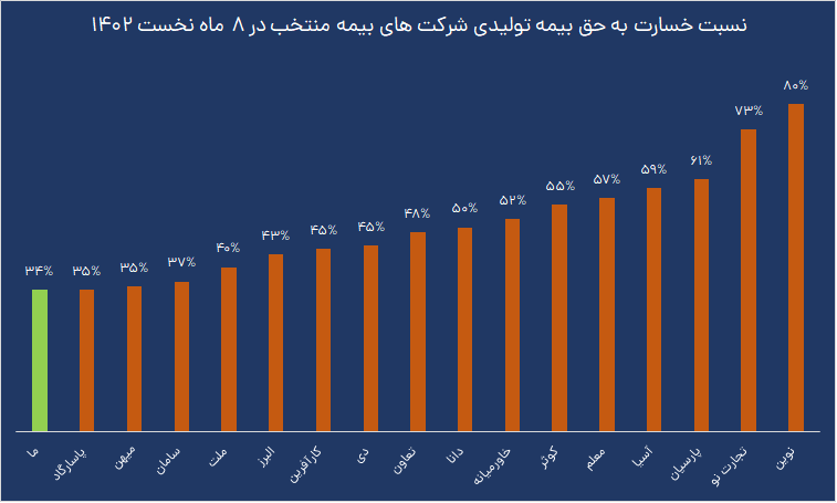 فروش بیمه ما در ۸ ماهه نخست سال جاری ۱۱۶ درصد رشد داشته در حالی که خسارت پرداختی ۷۱ درصد رشد داشته و نتیجه اینکه نسبت خسارت بیمه ما در این مدت ۱۰ واحد بهبود یافته و با ثبت تراز مثبت ۱۹۰ درصد، باید منتظر ثبت رکورد فروش جدید در پایان سال ۱۴۰۲ بود.