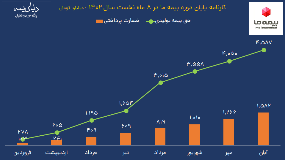 شرکت بیمه ما در ۸ ماهه نخست ابتدایی سال ۱۴۰۲ موفق شده تا از محل صدور بیمه نامه به درآمدی بالغ بر ۴۵ هزار و ۸۶۹ میلیارد و ۶۴۲ میلیون ریال دست یابد که نسبت به ۸ ماهه نخست سال گذشته رشدی ۱۱۶ درصدی را ثبت کرده است. این بیمه گر با مدیرعاملی ابراهیم کاردگر تا پایان آبان امسال بالغ بر ۱۵ هزار و ۸۲۳ میلیارد و ۴۴۵ میلیون ریال خسارت پرداخت و با ثبت نسبت خسارت ۳۴ درصدی، پایین ترین نسبت را در بین شرکت های بیمه گر منتخب ثبت کرده است.