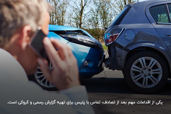 ۳- تماس با پلیس بعد از تصادف برای تهیه گزارش و کروکی
