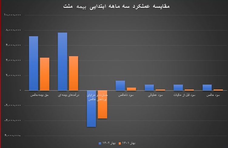 عملکرد شرکت در فصل بهار امسال با پیشبینی مدیریت از فروش حق بیمه این شرکت مطابقت دارد. در آمد حق بیمه ناخالص بیمه ملت در سه ماهه ابتدایی ۱۴۰۲ نسبت به مدت مشابه سال ۱۴۰۰ معادل ۴۷ درصد رشد کرده است. این رشد و ثابت ماندن حق بیمه اتکایی واگذاری شرکت موجب رشد ۶۶ درصدی حق بیمه خالص در سال ۱۴۰۱ و رسیدن آن به رقم ۷۲۰ میلیارد و ۵۷۱ میلیون تومان شده است. رشد ۹ درصدی درآمد سرمایهگذاری و رشد ۳۷۴ درصدی سایر درآمدهای بیمهای موجب رشد ۶۹ درصدی درآمدهای بیمهای ملت در بهار ۱۴۰۲ نسبت به بهار ۱۴۰۱ شده است.